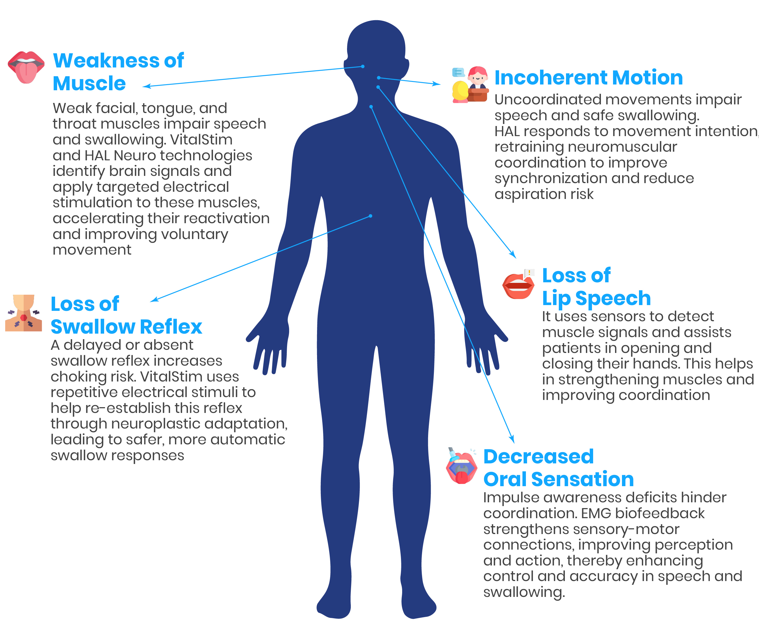 Speech and Swallowing Disorders results in numerous challenges that impact life very badly by hindering effective swallowing and communication. Degenerative illnesses, brain traumas, and neurological events like strokes can cause these conditions. Social engagement and dietary intake may be impacted by issues with articulation, voice, fluency, and the physical swallowing process.